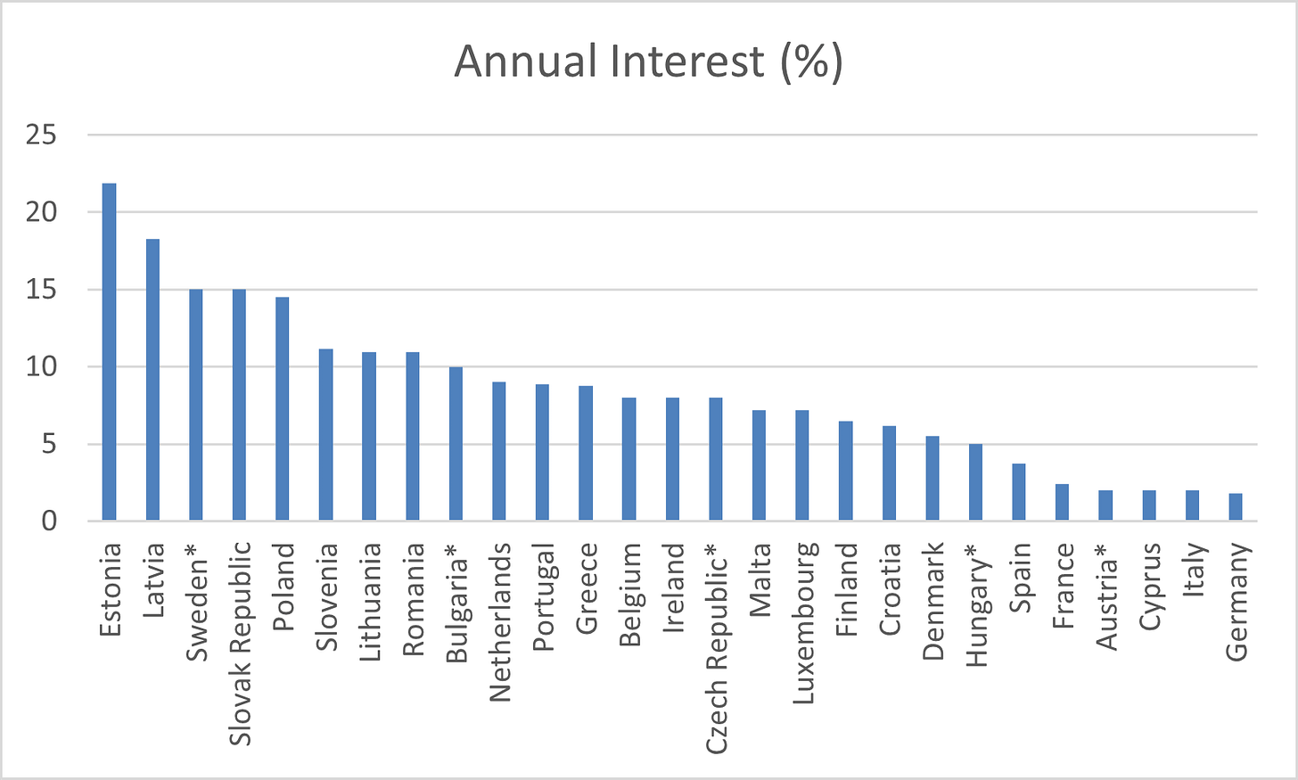 Diemžēl, par NN apmēru (18,25% gadā) joprojām neviens nerunā, ka tas ir nesamērīgs mūsdienu apstākļos. Pat ātrajiem kredītiem ne vienmēr ir tādas likmes. Zemāk tabulā redzams, ka Latvijai ir 2. augstākā NN likme visā ES.