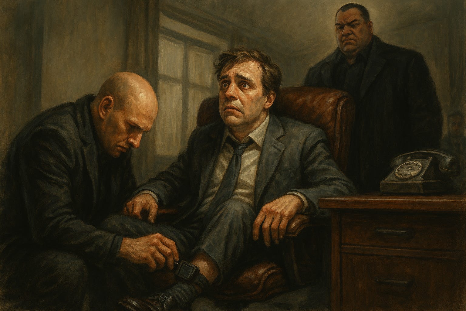 Kamēr Reno paslēpās aiz blakus durvīm, Fēlikss ielika pistoli galda atvilktnē un atstāja to puspievērtu. Tajā brīdī Fēliksa kabineta durvis atsprāga un tajās parādījās Fišs ar nemainīgi pavadošo svītu.