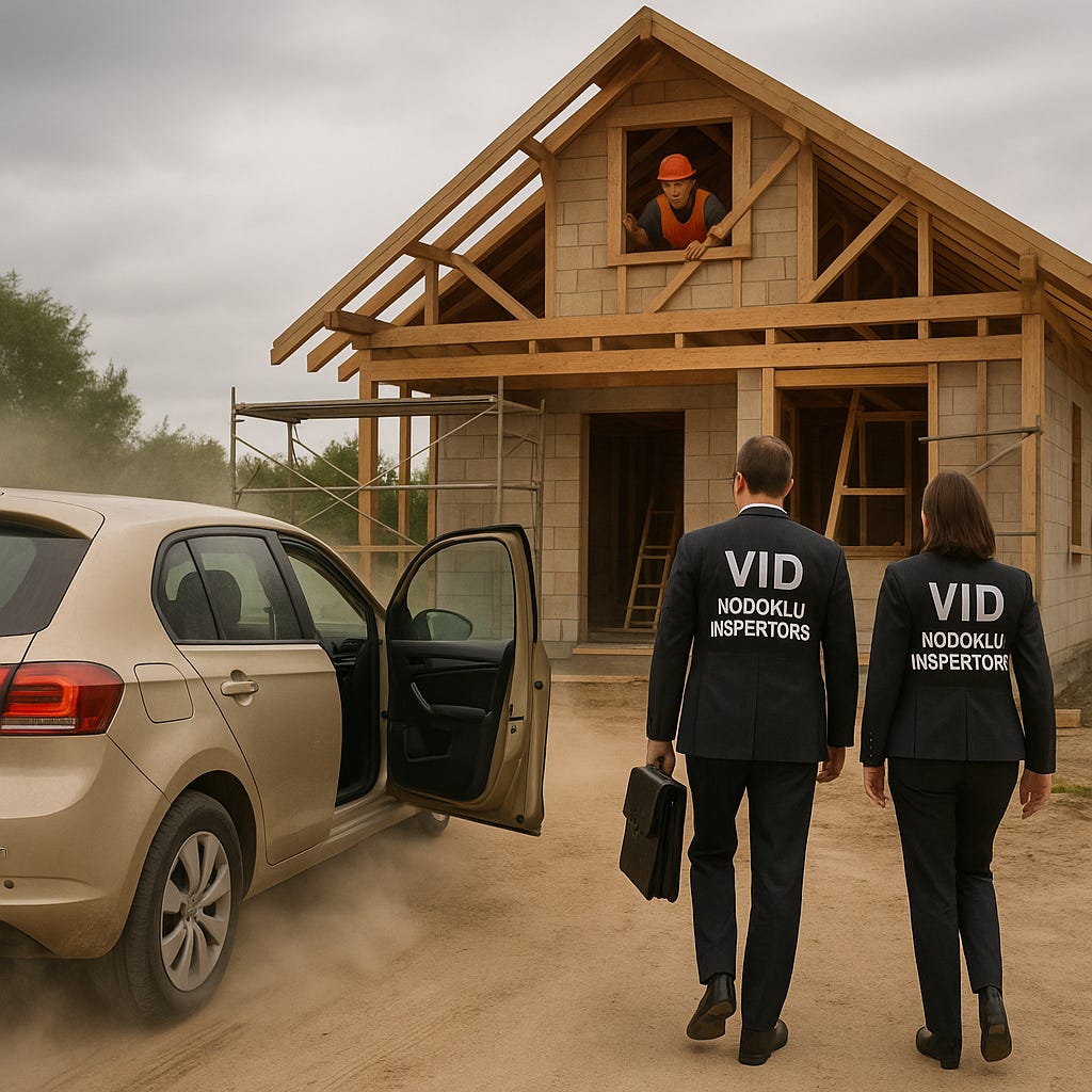Pie kādas jaunbūves nošvīkstēja riepas, gaisā pacēlās putekļi, bet no auto izkāpa pārītis VID nodokļu inspektoru. Viņi brīvi iegāja teritorijā, visu apskatījās, ka privātmājas karkass jau pabeigts un jau būvnieki pamazām ķērušies pie iekšdarbiem. Tomēr interesanti, ka jaunbūvē nevienu nemanīja. Inspektorus nepameta jocīga sajūta, ka viņus kāds vēro. Tā arī bija, jo pāris celtnieku, instinktu vadīti, bija paspējuši noslēpties mājas bēniņos.