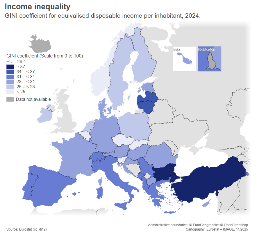 Svaigākie dati par GINI (nevienlīdzības koeficientu)